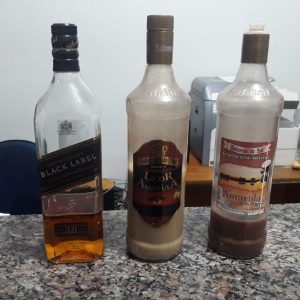 Dentro do carro tinha uma garrafa de Whisky e duas de coquetel etílico e como passageiros estavam a esposa e a filha de 5 anos.