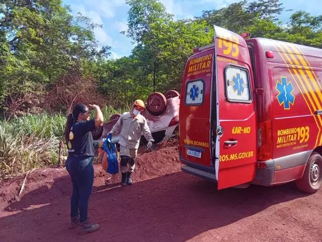 Motorista perde controle da direção e capota carro em estrada de MS