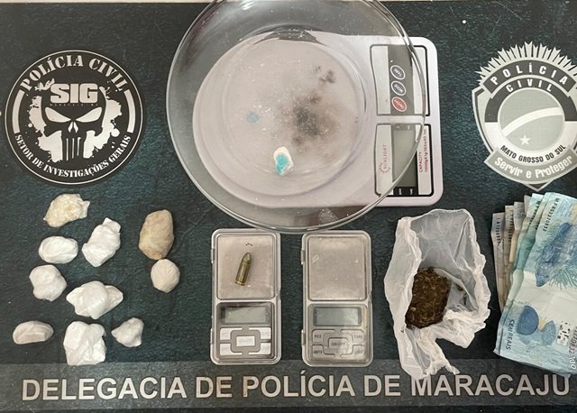 Ainda, ao realizarem buscas na residência do casal, foram apreendidas balanças de precisão e pratos utilizados para separação das drogas. Por fim, fora encontrado em posse do masculino munição de arma de fogo de uso restrito em desacordo com determinação legal/regulamentar.