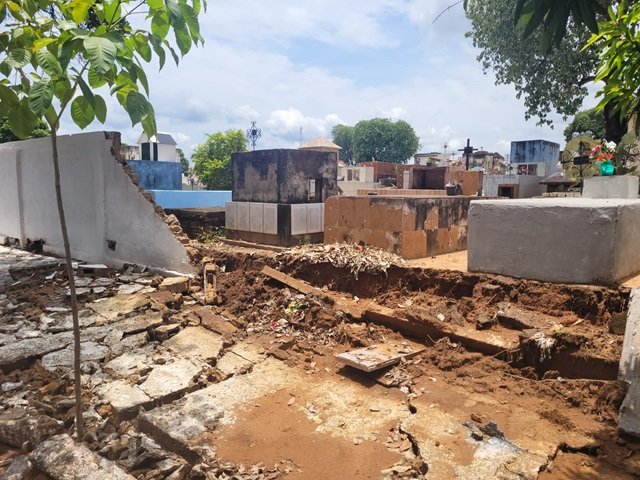 Trecho do muro do Cemitério Municipal foi derrubado durante o temporal - Foto Portal de Aquidauana