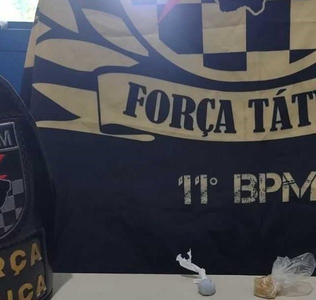 De imediato, a guarnição de serviço realizou a abordagem para averiguação, localizando o objeto que havia sido jogado pelo suspeito, que se tratava de 26 (vinte e seis) trouxinhas de entorpecentes análogo ao Crack.