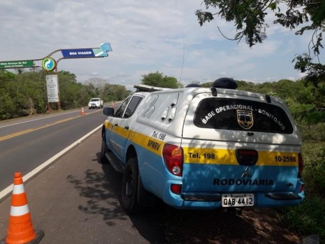 Viatura durante fiscalização na MS-178, em Bonito (Foto: Divulgação / Polícia Militar Rodoviária)