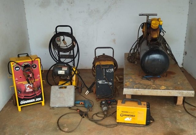 Dentre as ferramentas estavam um compressor, lavadora de alta pressão, furadeiras, lixadeira profissional, máquinas de solda e carregador de bateria, entre outros. A Polícia segue investigando outros fatos que podem ser atribuídos aos mesmos indivíduos.