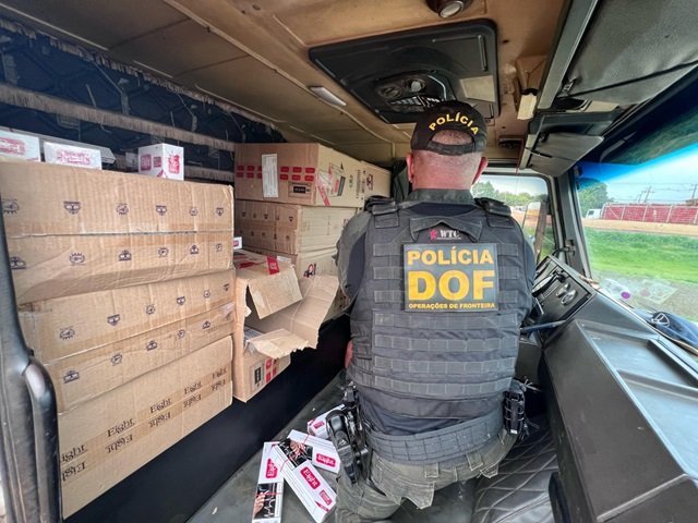 Policiais militares do DOF (Departamento de Operações de Fronteira) apreenderam, na madrugada deste sábado (13), 1.250 pacotes de cigarros e seis caixas de cigarros eletrônicos. Os produtos, de origem estrangeira, não tinham licença legal para circulação e comercialização no Brasil.