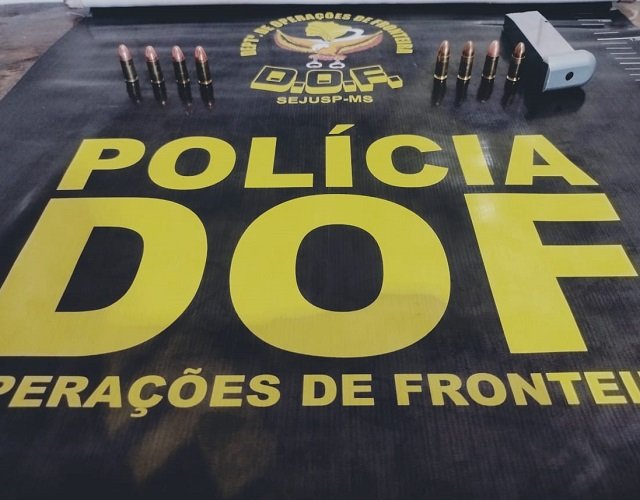 Policiais militares do DOF (Departamento de Operações de Fronteira) apreenderam, na tarde deste sábado (13), um carregador de pistola de calibre 9 milímetros, com oito munições de mesmo calibre, intactas.