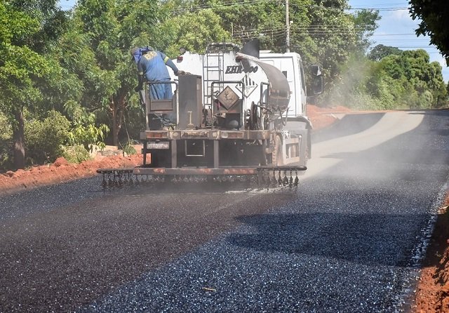 Na tarde de ontem (18), aproveitando esse solzão aquidauanense, a emulsão asfáltica começou a ser aplicada na rua.