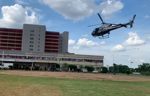 Para o pouso no HRMS, a Brigada de Emergência preparou todo o local em frente ao Pronto Atendimento Médico (PAM), para que a ação fosse concluída com segurança.