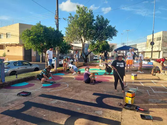 Para a arquiteta, essa sensação de pertencimento está conectada com um carinho que precisa ser construído em relação a espaços públicos. “As artistas fazem os traçados, escolhem as cores e cada voluntário pega o material que trouxemos e fica livre para trabalhar. E, aos poucos, a praça vai tomando mais cor”.