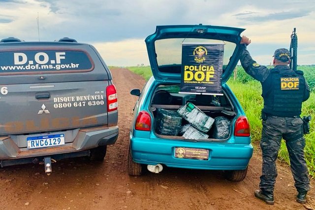 Policiais militares do DOF (Departamento de Operações de Fronteira) apreenderam neste sábado (20), na MS-180 em Iguatemi, mais de cem quilos de drogas que seguiam em um VW Gol, conduzido por um homem de 19 anos.