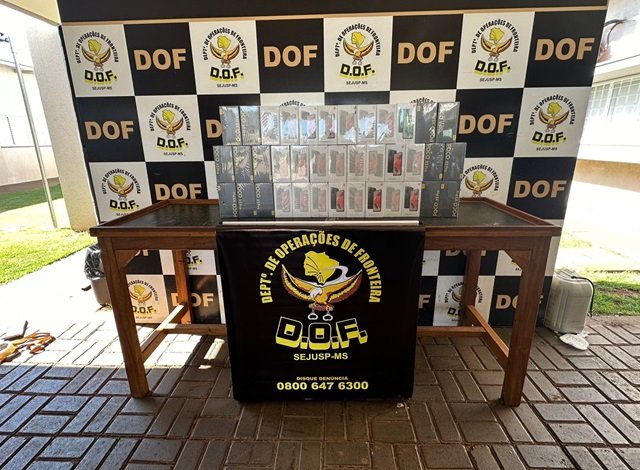 Policiais Militares do DOF (Departamento de Operações de Fronteira) apreenderam na manhã desta segunda-feira (29), na rodovia MS-379, trinta e oito aparelhos de telefone celular que estavam escondidos nas caixas de ar de um veículo Ford Fiesta de cor branca, com placas afixadas de Teodoro Sampaio (SP).