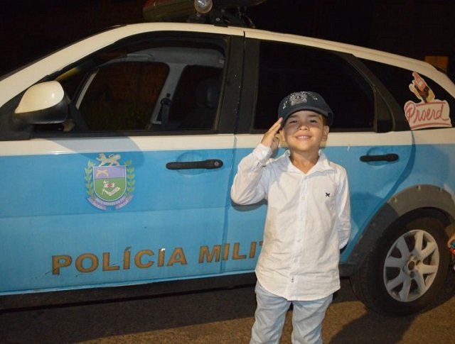 Diego é um grande admirador da PMMS e sonha em seguir essa carreira quando crescer. Ao saber do seu aniversário, os policiais não hesitaram em comparecer para tornar o dia do pequeno ainda mais especial.