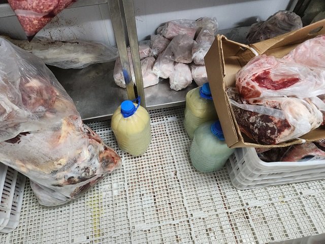 Em um mercado do município, foi localizado, no açougue, câmara fria e expositores de resfriados e congelados, carnes, leite e queijo de origem clandestina, que, consoante médico veterinário da IAGRO podem causar inúmeras doenças expondo a risco a saúde da população.