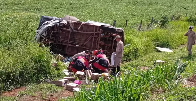 Ainda não se sabe o motivo, mas o condutor da Kombi perdeu o controle do veículo, invadiu a pista contramão, bateu na lateral do caminhão e capotou em seguida, parando às margens da rodovia.