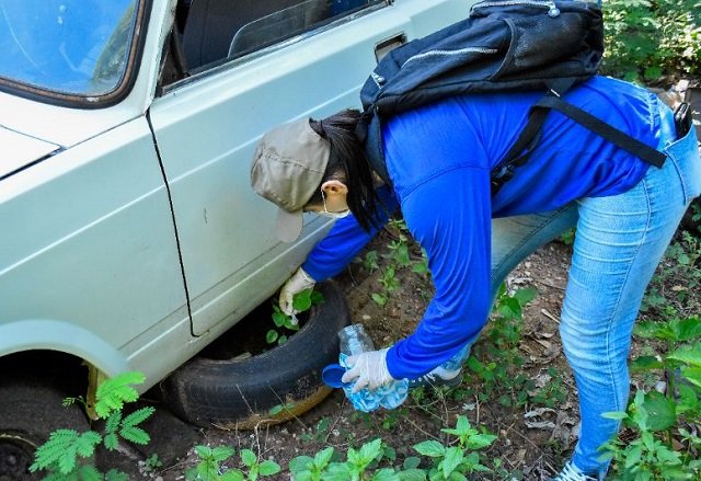 Eles distribuiram material educativo e, ainda, durante as visitas fizeram manejo e aplicação de produto químico para tratamento de depósitos de água.