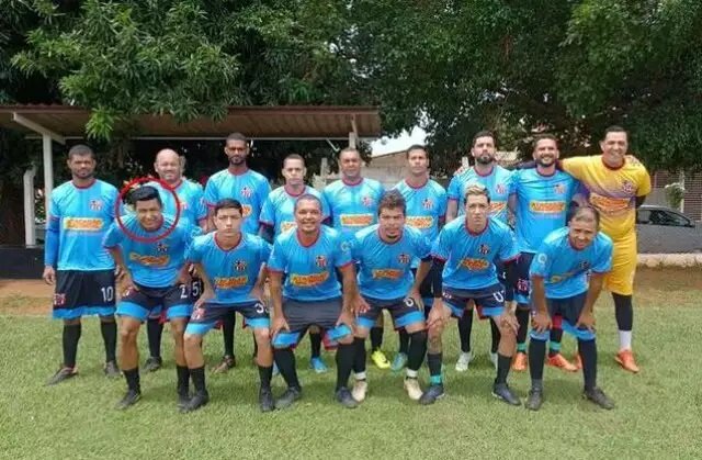 José Luiz (com círculo vermelho) posando para foto com os amigos do Beira-Mar (Foto: arquivo pessoal)