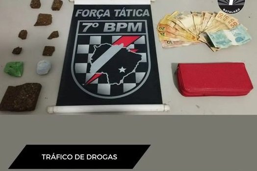 Já no imóvel, encontrava-se a mulher que foi também delatada pela prática ilícita. Após buscas no local, foram encontradas mais sete porções de maconha, que totalizaram 171g e a quantia de R$760,00.
