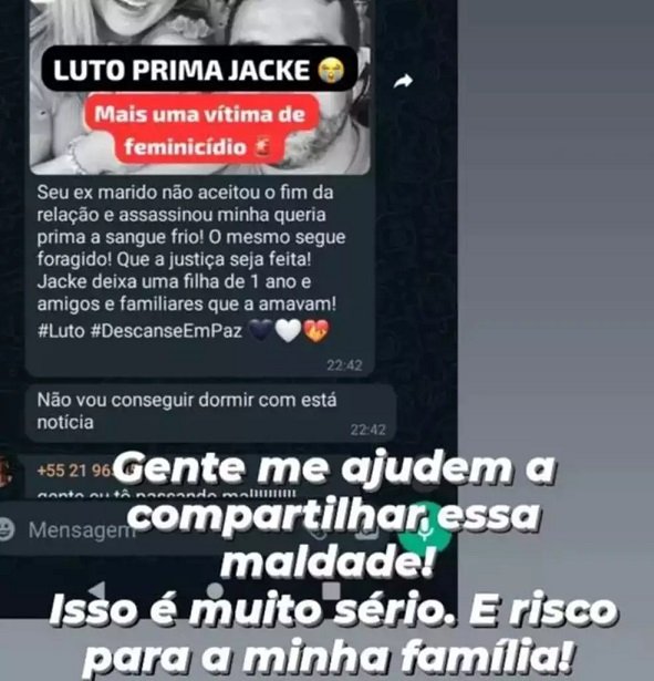 O post, divulgado por um número com o DDD 021, falava que Pedro havia assassinado a esposa por ciúmes. “Foi uma situação que pegou a gente de surpresa, felizmente a divulgação aconteceu no final da noite e durante a madrugada não teve tanto alcance. Mas a primeira coisa que fizemos foi tranquilizar os familiares que estavam preocupados”, contou Pedro.
