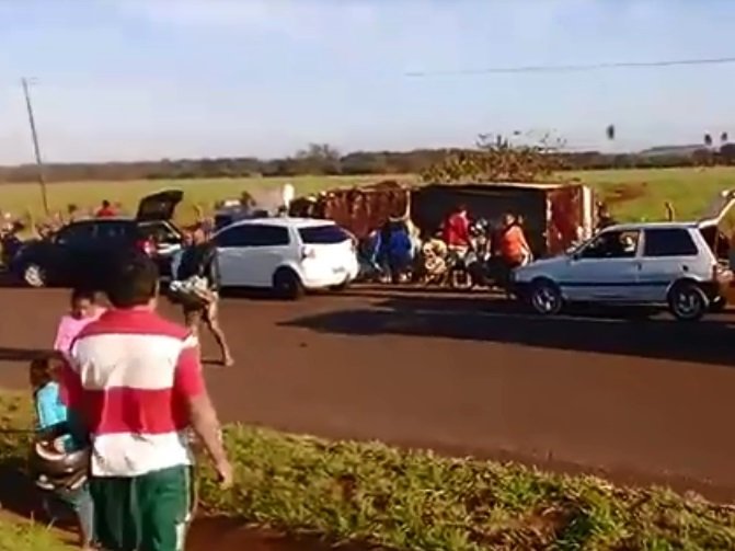 Um caminhão que transportava leite teve sua carga retirada por moradores e motoristas no momento em que tombou ao passar pelo trecho da BR-262 no Indubrasil, distrito industrial na região oeste da Capital, na manhã desta segunda-feira (10).