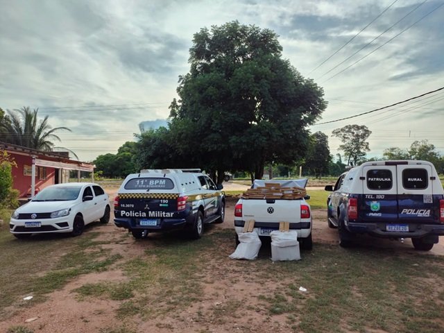 Em posse das informações, foi solicitado apoio da equipe da Patrulha Rural que realizava policiamento na região, na qual ambas realizaram diligências e abordaram um veículo Saveiro, carregando 400 kg (quatrocentos quilogramas) de substância análoga a maconha, divididos em 451 (quatrocentos e cinquenta e um) tablete de maconha.