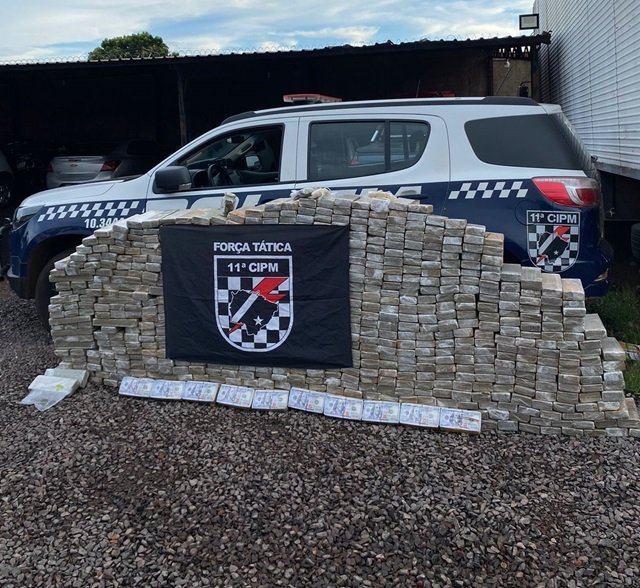 No total, foram apreendidos 722 Kg de maconha e 9,4 Kg de pasta base de cocaína, além de diversos materiais relacionados ao tráfico, como rolos de plástico filme, embalagens plásticas e balanças de precisão.