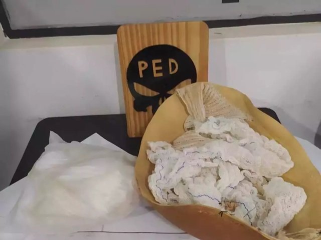 Mulher de 35 anos, posteriormente identificada como Luzia Cristina dos Santos, foi presa na tarde de sábado (6) ao tentar adentrar no PED (Presídio Estadual de Dourados) com 823 gramas de cocaína escondida em uma barriga falsa.