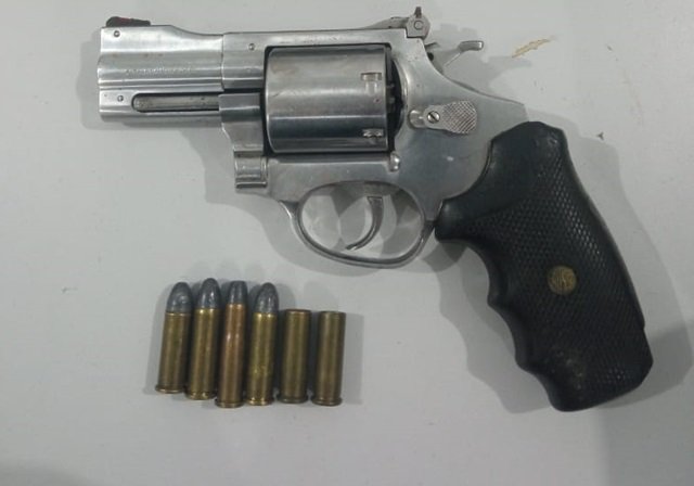 A equipe deslocou até a residência próxima ao endereço da vítima, onde o mesmo encontrava-se na frente da residência, visivelmente alterado e proferindo ameaças. Quando a guarnição se aproximou, visualizou o autor de bermuda, sem camisa e com uma arma de fogo em sua cintura.