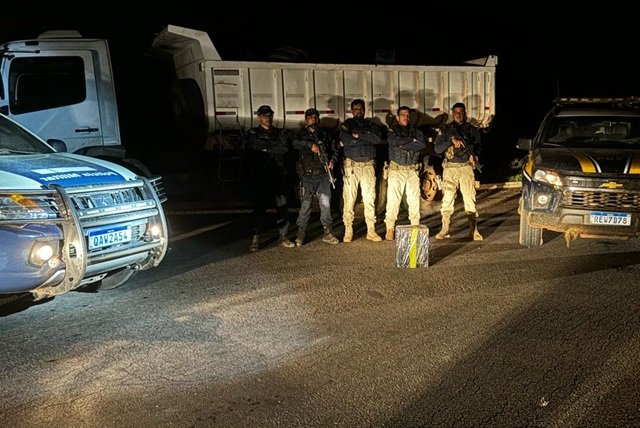 PM com apoio da PRF apreende caminhão com carga recorde de maconha