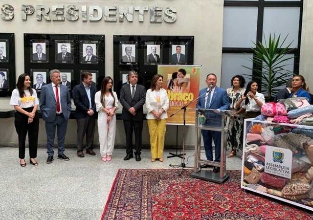 Esquentando o clima de solidariedade, a campanha “Seu Abraço Aquece - Doe calor e faça o bem” foi lançada, na manhã de ontem, terça-feira (23), na Alems (Assembleia Legislativa de Mato Grosso do Sul). A primeira-dama e madrinha da campanha, Mônica Riedel, e o secretário de Estado de Administração, Frederico Felini, participaram do lançamento ao lado do presidente da Casa de Leis, Gerson Claro e demais parlamentares.