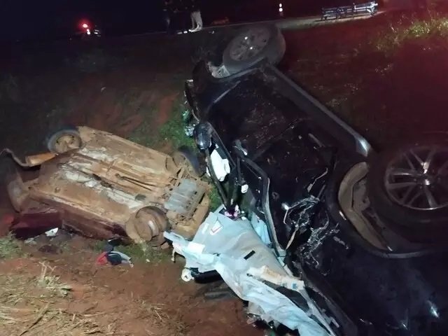 Na sequência, os dois veículos caíram em uma vala, às margens da rodovia, e ficaram totalmente destruídos. Michele Aparecida de Lima, de 24 anos, e o filho, de 1 ano e seis meses, ocupavam o Uno e morreram no local.