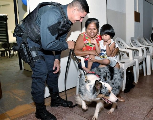 Além da palestra dos profissionais da SESAU, os policiais militares apresentaram os cães do canil da PM e explicaram como eles ajudam nas atividades de terapia das crianças autistas que participam do projeto “Pelo Amigo – Cinoterapia”.