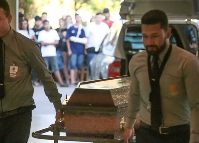 Corpo do menino assassinado por engano chegando no Cemitério Memorial Park onde foi velado (Foto: Marcos Maluf)