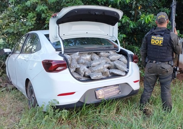 Policiais militares do DOF (Departamento de Operações de Fronteira) apreenderam, na tarde desta segunda-feira (6), um Chevrolet Onix branco carregado com 248,75 de maconha e 43,7 quilos de skank. Ao todo 292,45 quilos de drogas.