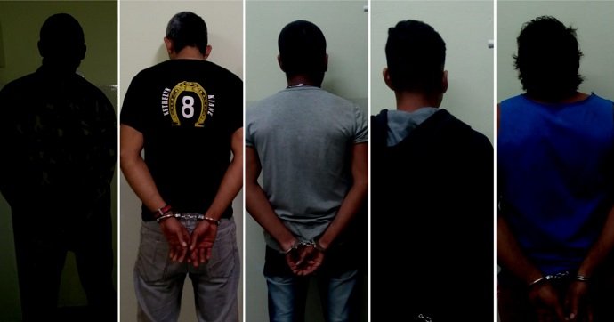 Os quatro primeiros indivíduos (homens de 41, 32, 31 e 24 anos de idade, respectivamente), foram capturados no Centro da cidade e o quinto elemento (homem de 42 anos) foi capturado no Bairro Matadouro.