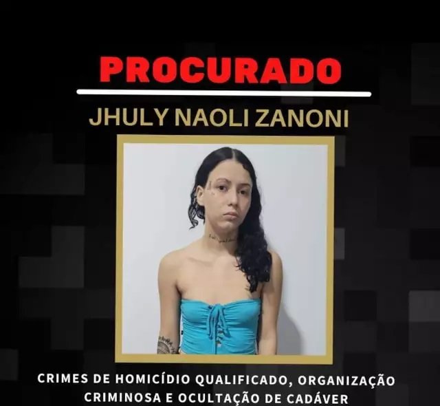Jhuly Noeli Zanoni, de 19 anos, suspeita de mandar decapitar um adolescente de 16 anos, por dívida de droga, em Sorriso, no Mato Grosso, foi presa neste domingo pela PRF (Polícia Rodoviária Federal), em Caarapó, distante 274 quilômetros de Campo Grande. O corpo da vítima ainda não foi localizado.