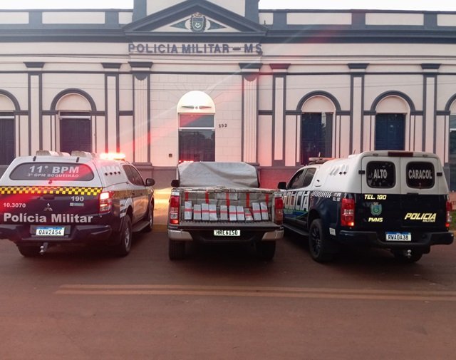 As equipes realizavam rondas e policiamento na região da Margarida, área rural da cidade de Bela Vista, quando avistaram uma camionete trafegando por uma estrada vicinal em alta velocidade, em atitude suspeita.