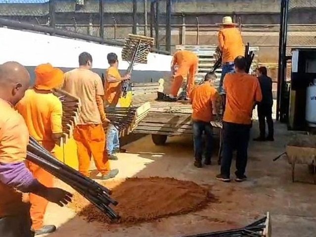 A confecção dos rodos envolveu três internos diretamente na produção e outros reeducandos participaram do processo de carregamento das peças no caminhão, que transportou a doação até o local de entrega.