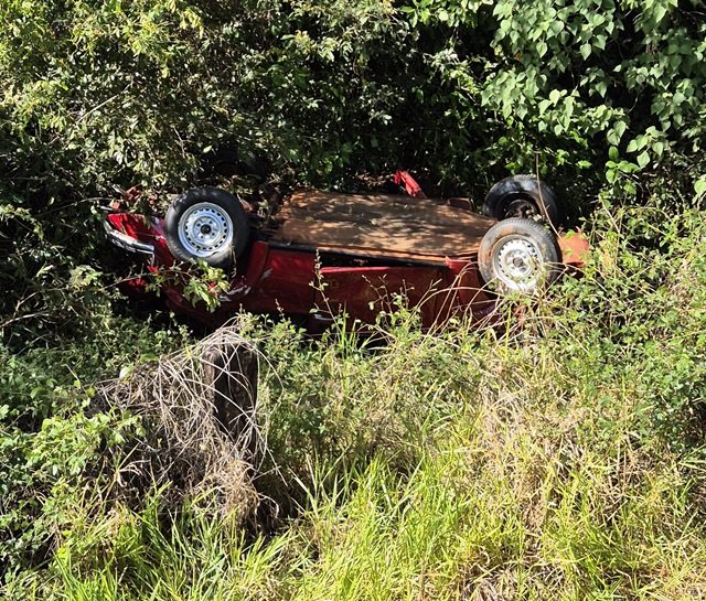 No local, um veículo VW Fusca caiu em uma ribanceira próximo ao Ribeirão Vermelho.