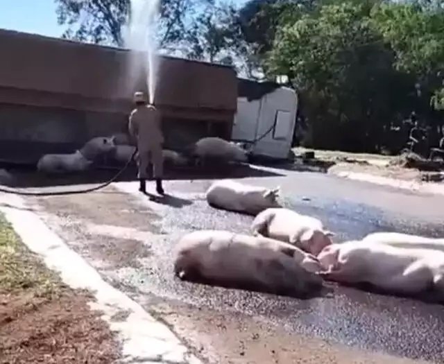 Além disso, alguns porcos foram furtados por moradores da região e os que sobraram vivos serão analisados para saber se poderão ser abatidos para comércio ou não. Vários deles fugiram para o meio do mato, buscando abrigo e uma parte ficou agonizando na pista.