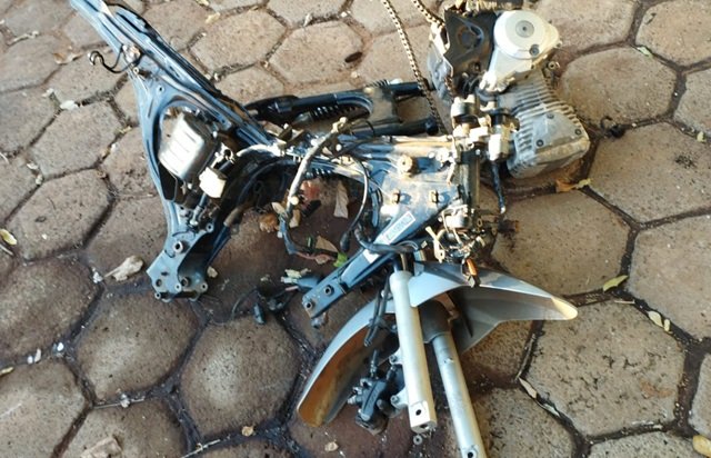No local foram encontradas partes de uma motocicleta Honda Fan 160, que foi subraída no último dia 1º.