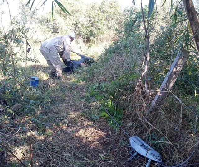Durante o combate a Guarnição se deparou com uma vaca caída e atolada na lama, sendo realizado o salvamento do animal imediatamente e a colocando em segurança.