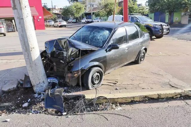 Casal ficou gravemente ferido na manhã deste domingo (16), em acidente na Avenida Afonso Pena com a Rua Terenos, no Bairro Amambai, em Campo Grande. O condutor, de 27 anos, bateu o veículo em um poste de energia.