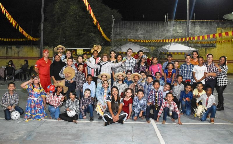 Organizado pela coordenação do projeto, o arraiá teve muita pipoca, variedade de doces, arroz carreteiro e macarrão tropeiro, brincadeiras e danças das crianças.