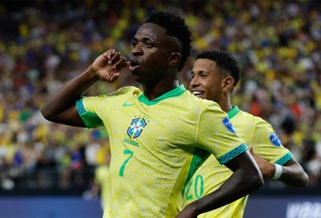 Comandado pelo atacante Vinicius Júnior, o Brasil derrotou o Paraguai por 4 a 1, na noite desta sexta-feira (28) no Allegiant Stadium, em Las Vegas (Estados Unidos), para ficar muito perto da classificação para as quartas de final da Copa América. Após este triunfo, a seleção brasileira ocupa a segunda posição do Grupo D com quatro pontos em duas partidas.