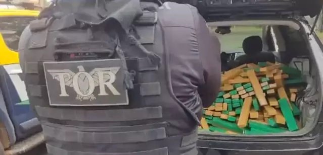 Durante a abordagem ao automóvel, a equipe que fazia a fiscalização constatou a presença dos tabletes de maconha no porta-malas do veículo.