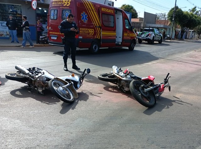 No local foi constatado acidente entre duas motocicletas, resultando em duas vítimas.