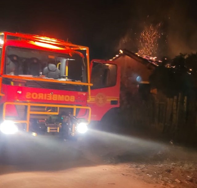De imediato uma equipe de combate se deslocou para atender a ocorrência e no local os bombeiros confirmaram tratar se de incêndio em uma casa. As chamas já haviam atingido quase todo o imóvel.