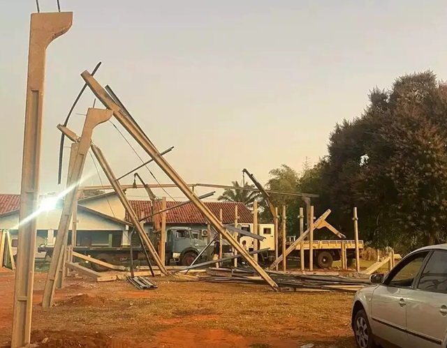 Guindaste não aguenta e derruba estrutura de centro comunitário de Palmeiras