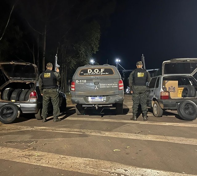 Os policiais faziam bloqueio na rodovia, quando abordaram os carros. Durante vistoria, foram encontrados nos veículos 74 pneus de diversas medidas, além de cem pacotes de cigarros contrabandeados. Questionados, ambos os motoristas afirmaram que pegaram os produtos em Pedro Juan Caballero, no Paraguai, e levariam até Campo Grande.