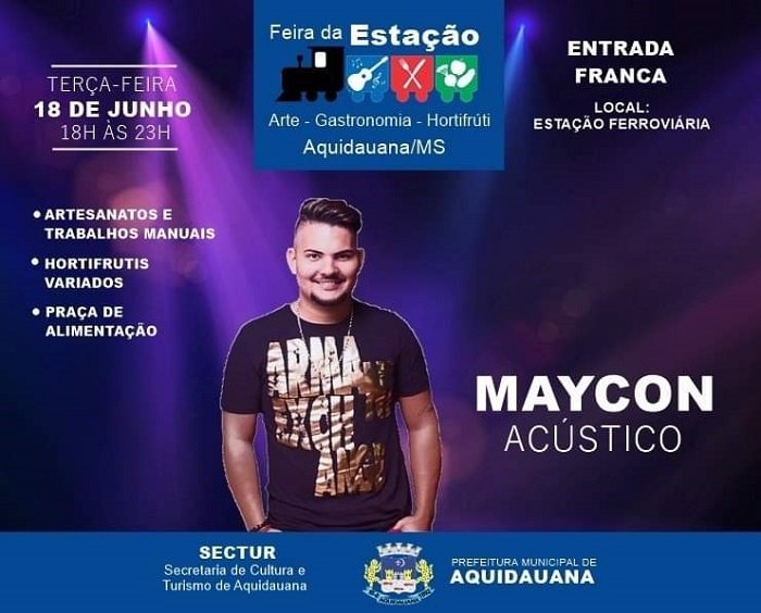 Hoje, 18 de junho, das 18h às 23 horas, tem Feira da Estação em Aquidauana. Não fique de fora, vem aproveitar que os preços e produtos estão excelentes!