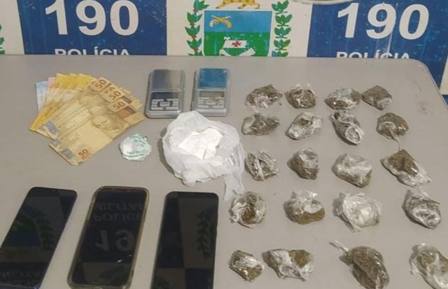Com a esposa do traficante, de 18 anos, foi localizado uma porção de cocaína. Os policiais ainda localizaram outra porção dentro de um pote de algodão e outra balança de precisão em baixo da geladeira.